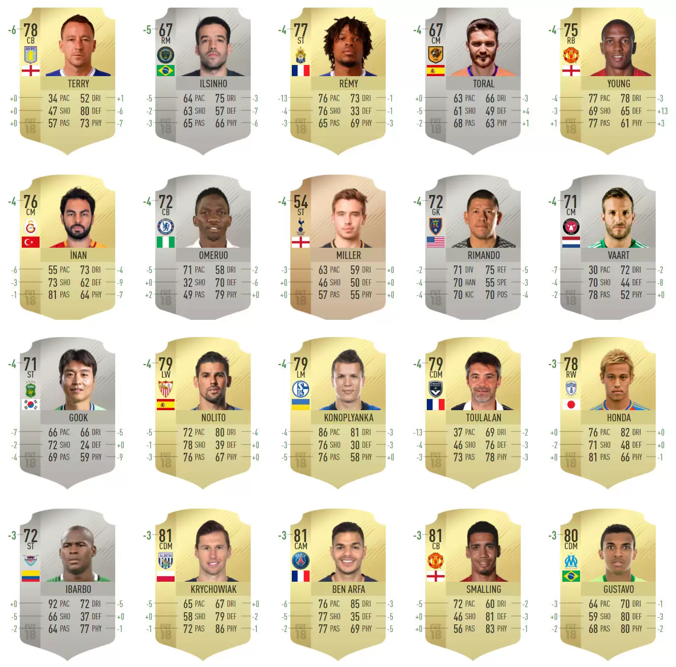 Paradójicamente son varios de los más experimentados quienes conforman el No Top 20 liderado por el ex capitán y emblema del Chelsea, John Terry, así como también el holandés Rafael van der Vaart, el japonés Keisuke Honda y el colombiano campeón de América con Atlético Nacional, Víctor Ibarbo.