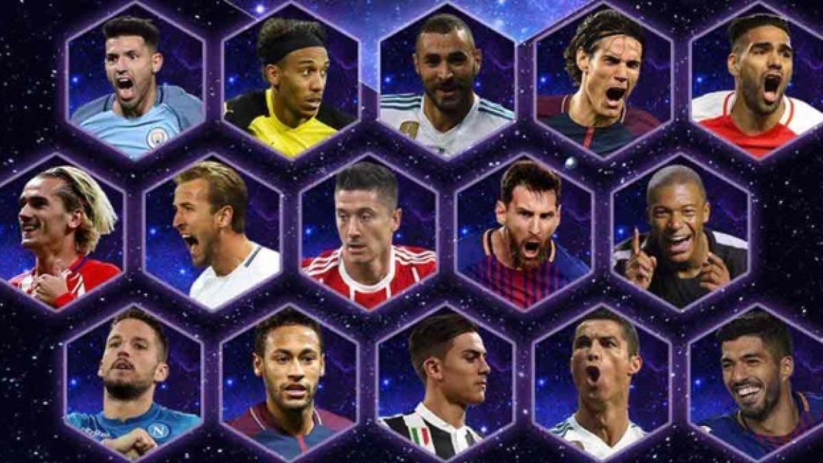 Delanteros: Sergio Agüero (Manchester City), Pierre-Emerick Aubameyang (Dortmund), Karim Benzema (Real Madrid), Edinson Cavani (PSG), Paulo Dybala (Juventus), Radamel Falcao (Mónaco), Antoine Griezmann (Atlético de Madrid), Harry Kane (Tottenham), Robert Lewandowski (Bayern), Kylian Mbappé (Mónaco-PSG), Dries Mertens (Nápoli), Lionel Messi (Barcelona), Neymar (Barçelona-PSG), Cristiano Ronaldo (Real Madrid) y Luis Suárez (Barcelona).