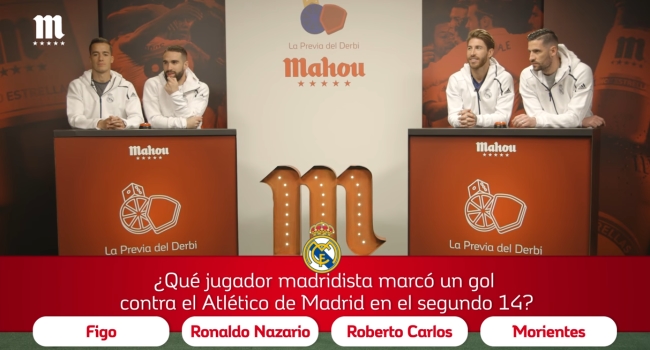 En antesala de lo que será un nuevo derbi madridista, la marca de cerveza oficial de LaLiga española condujo un entretenido cuestionario sobre la historia del encuentro ante cuatro figuras del Real Madrid y el Atlético de Madrid.