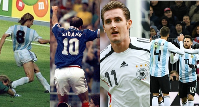 A pocas semanas del lanzamiento oficial de uniformes de la mano de adidas para la próxima Copa del Mundo, uno de los sitios especializados en el diseño de camisetas a nivel mundial se encargó de repasar brevemente la evolución en el modelo y patrones utilizados por la firma alemana en sus dorsales durante las últimas citas mundialistas.