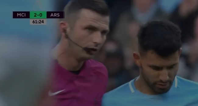 En el complemento, la figura y goleador del equipo, Sergio Agüero, fue sustituido por el brasileño Gabriel Jesus y mientras abandonaba el campo de juego le tuvo que hacer un favor especialmente al árbitro del encuentro, quien le pidió ayuda para extraer un artefacto del campo de juego.
