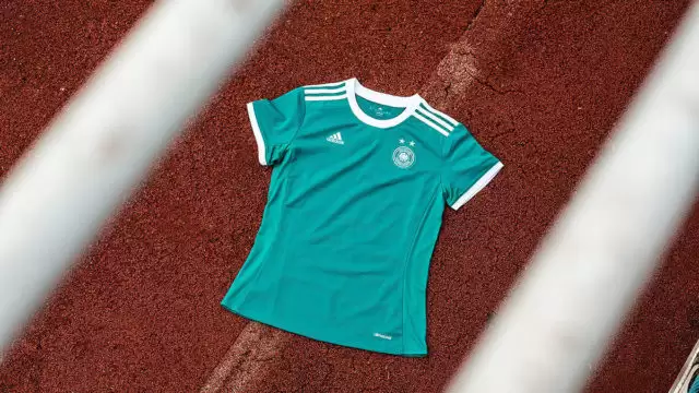 Y es que, tras lanzar el modelo titular con su tradicional color blanco y detalles en negro, un diseño liso en un verde azulado compone el nuevo uniforme suplente del equipo alemán, que además retoma las tres tiras características de su patrocinador técnico en las mangas y no en el costado de la camiseta.