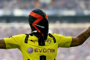 Aubameyang y el lío entre dos marcas por su festejo con una máscara