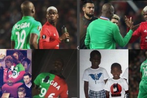 De este modo, y ante la presencia de una gran parte de la familia de los futbolistas, Yeo Pogba madre de ambos, lució una particular camiseta especialmente diseñada para la ocasión con los template correspondientes a ambos clubes, en señal de apoyo hacia ambos hermanos por igual.