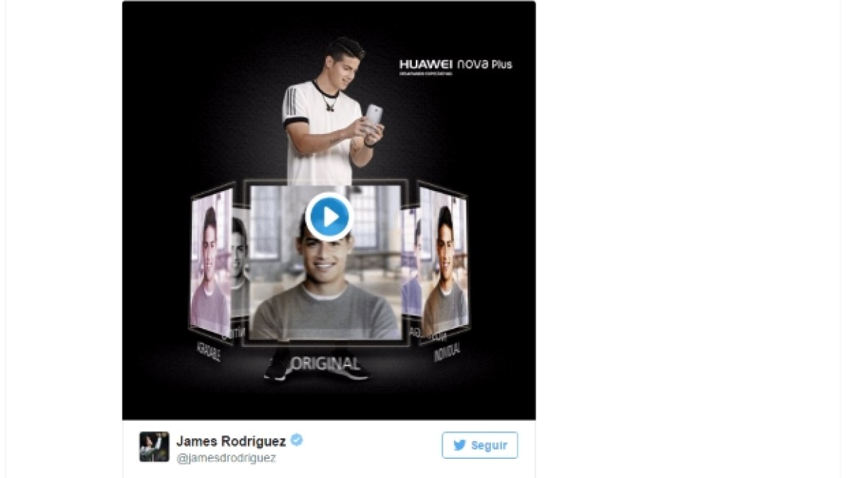 El astro colombiano del Real Madrid prestó su imagen para la nueva campaña de Huawei, en la cual se promociona el alto nivel de calidad de la cámara junto con sus respectivos filtros fotográficos.