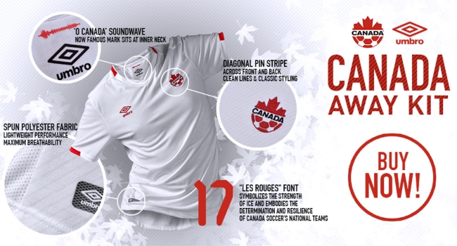 Basado en la simpleza actual de la mayoría de templates internacionales, el conjunto canadiense empleará sutiles detalles en rojo sobre una sobria y elegante base en blanco que además presentará el símbolo de una frecuencia de audio en el interior del uniforme, a modo de homenaje de la reconocida estrofa ‘Oh Canadá!’ que da inicio al himno nacional.