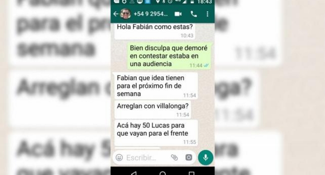 Con la captura de pantalla de una conversación llevada a través de WhatsApp, el presidente del club bahiense comprueba las intenciones del otro dirigente al pedirle que “vayan para adelante” y así asegurarse un lugar de permanencia en la Zona 4 del campeonato.