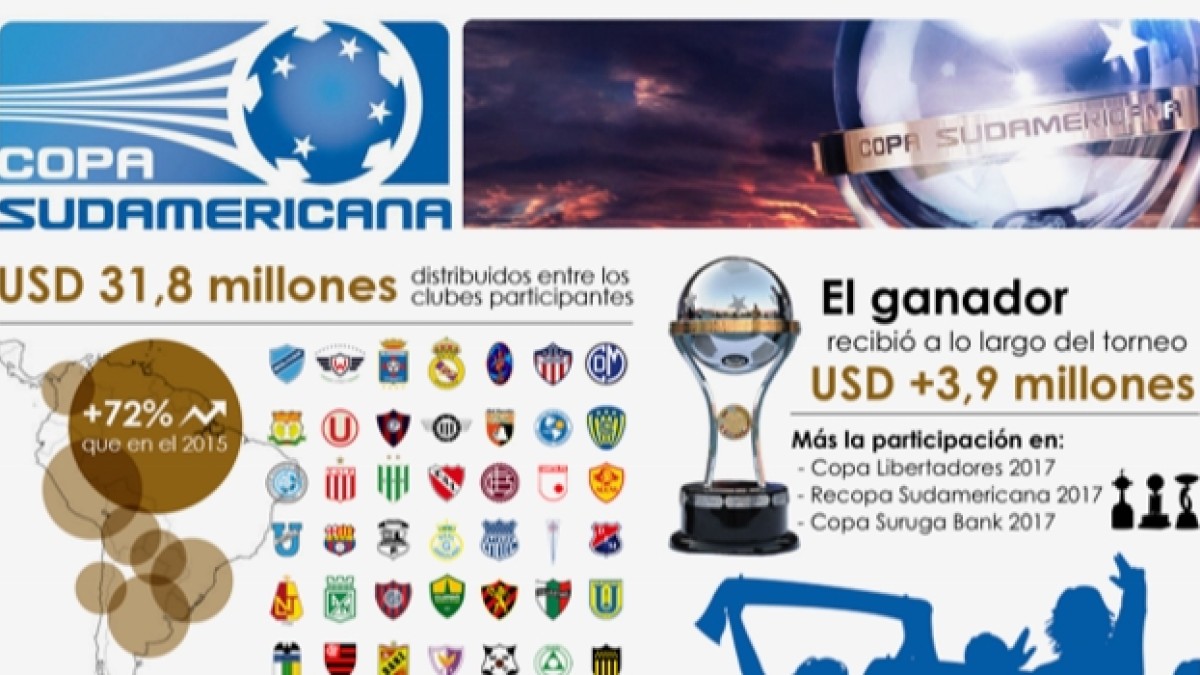 Gracias a una infografía oficial provista por la Conmebol, se supo que la anteriormente llamada Copa Sudamericana tuvo un considerable crecimiento del 72% entre las ediciones 2015 y 2016, en términos económicos y de participación de clubes a lo largo del continente.