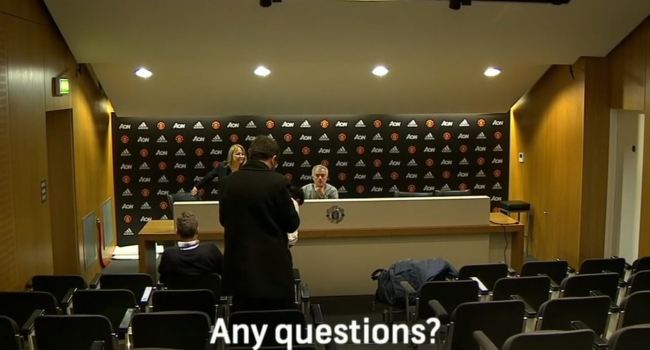 Posterior al encuentro frente al Crystal Palace de este fin de semana, correspondiente a la última fecha de la Premier League inglesa, José Mourinho acudió a la conferencia de prensa tal y como habitualmente lo hace, con la sorpresa de encontrar tan solo tres periodistas en la sala y no recibir ninguna pregunta.