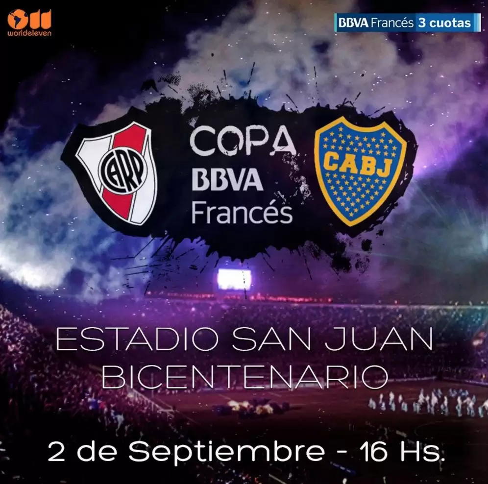 A través de una imagen promocional, World Eleven en conjunto con el BBVA Francés presentó los detalles del próximo Superclásico entre Boca y River en el marco de la preparación de ambos clubes de cara a la próxima temporada.