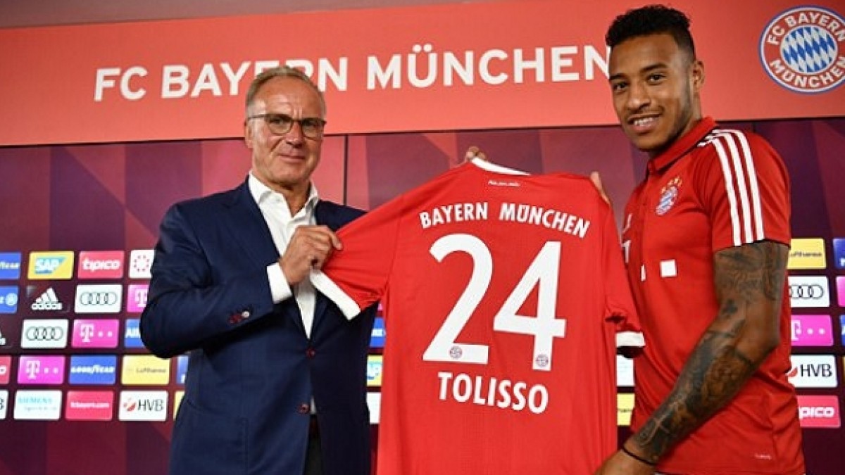 Y es que, en medio de la efusividad por la presentación de su nuevo refuerzo Corentin Tolisso, el francés de 22 años descuidó las reglas del mercado y se compareció ante la prensa y aficionados con un short de la competencia.