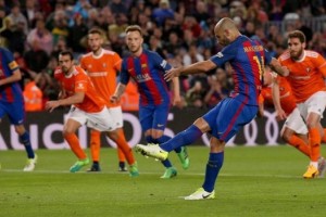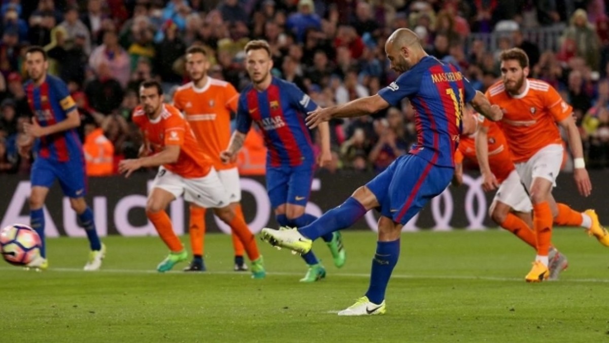 Parte de la alegría culé por el abultado triunfo 7 a 1 sobre el Osasuna de este miércoles, tuvo que ver con el penal convertido en gol que permitió a Mascherano anotar su primera anotación con la camiseta del FC Barcelona en 318 encuentros.