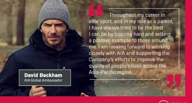 Tal y como compartió en sus redes sociales esta semana, el ex futbolista inglés David Beckham se convirtió en el nuevo embajador internacional de la aseguradora AIA Group, en un convenio que incluirá varias activaciones y campañas publicitarias en contacto permanente con los socios, agentes, clientes y empleados.