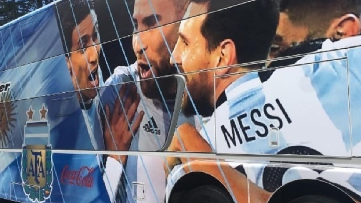 En un trayecto escoltado que irá desde Ezeiza hasta el barrio porteño de La Boca, el transporte no lucirá sino la imagen con los colores del seleccionado y una fotografía de Ángel Di María, Nicolás Otamendi, Éver Banega y Lionel Messi festejando un gol en uno de los partidos previos.