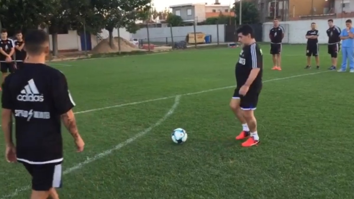 El día que Maradona le dio una clase de tiros libres a los jugadores de Riestra