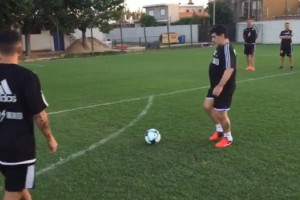La presencia del ‘10’ fue más que bien recibida por un plantel con mayoría de juveniles que escuchaban ansiosos cada consejo del Diego, en una serie de clase para ejecutar tiros libres sobre uno de los arcos que más adelante sería vencido por el mismo ex deportista.