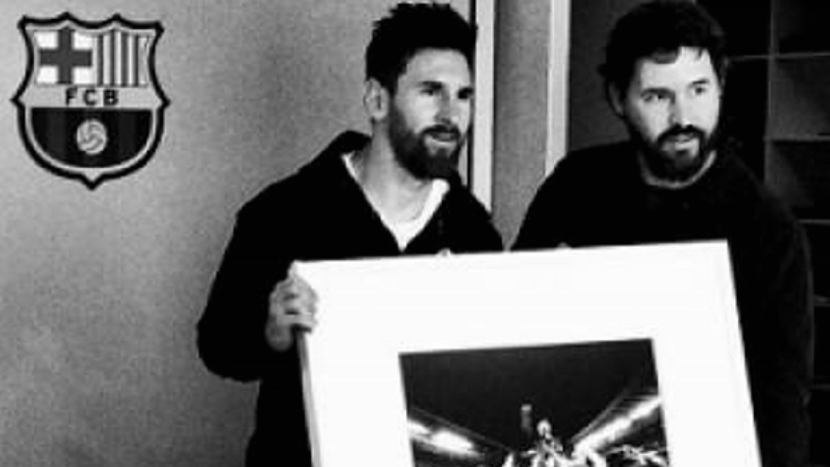 Días atrás, Santiago Garcés, el autor de la famosa foto de Messi festejando con sus hinchas tras la remontada histórica frente al PSG, tuvo la suerte conocer personalmente al protagonista mientras le hizo entrega del material especialmente enmarcado para el uso del futbolista.