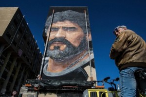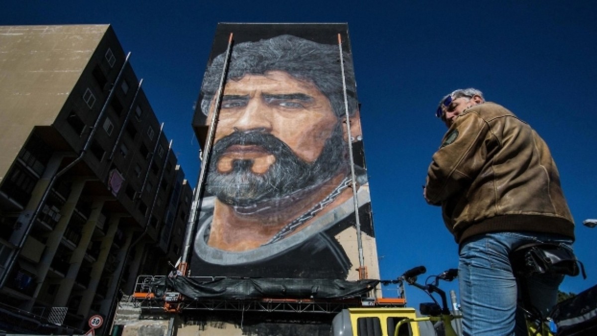 En las manos del reconocido artista callejero italiano Jorit Agoch, un nuevo mural relacionado al mundo del fútbol está por concluirse al sur de la ciudad de Nápoles, con Diego Armando Maradona como principal protagonista.