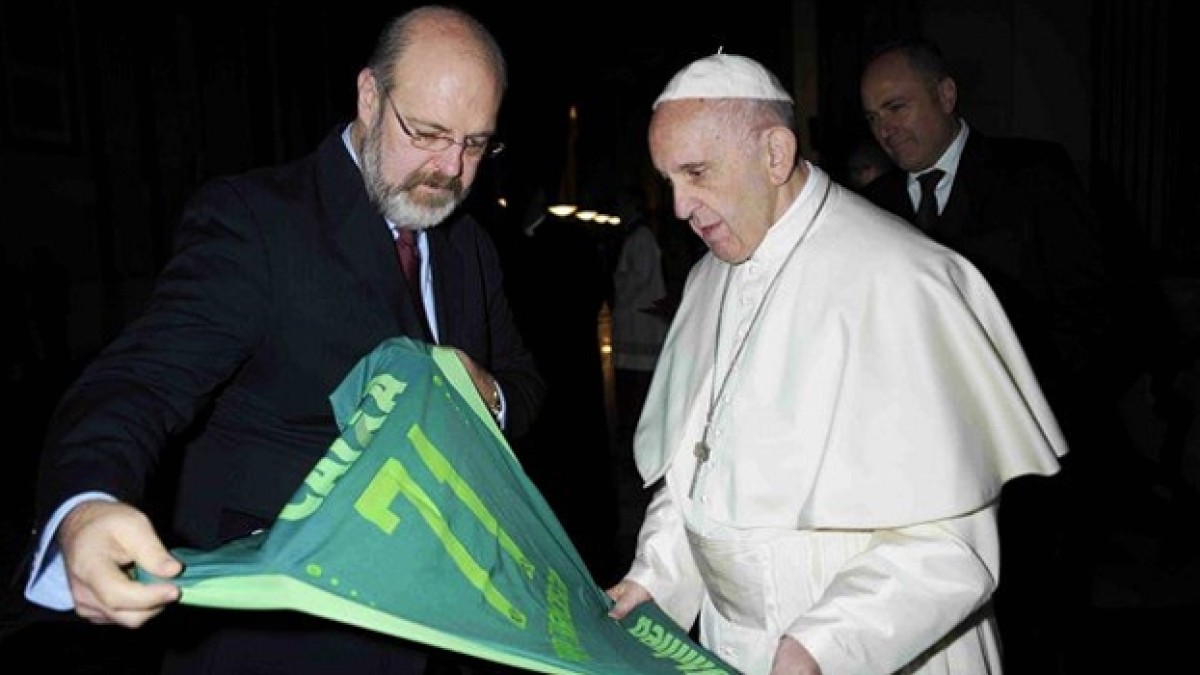 Directivos del Chapecoense visitaron al Papa y le entregaron una camiseta homenaje