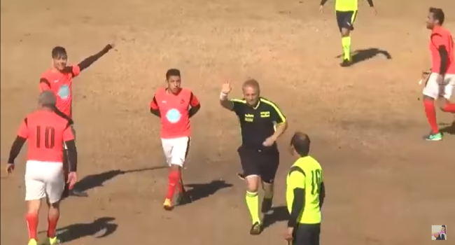 En medio de un clima totalmente distendido, una acción fue sancionada como penal por el ex árbitro cordobés Héctor Baldassi, quien tras los “reclamos” de Sarmiento terminó por acudir a un celular a modo de video referencia para validar finalmente la jugada.