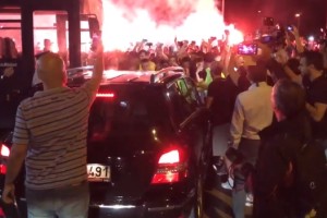 Con bengalas, banderas y enardecidos cánticos, cientos de aficionados recibieron al argentino quien curiosamente sólo jugó 21 partidos oficiales con dicha camiseta. El recibimiento fue compartido, y más tarde viralizado, por la cuenta oficial de Twitter del club.