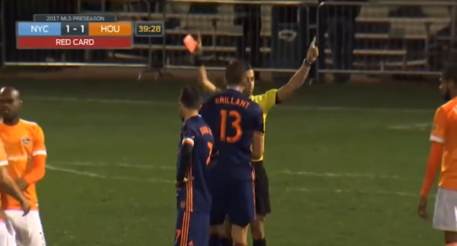 El hecho sucedió en el marco de un partido amistoso entre el New York City y el Houston Dynamo bajo la dirección arbitral de Nima Saghafi, quien tras lo sucedido afirmó sentirse tranquilo al saber que se hizo lo correcto.