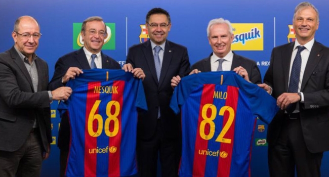Gracias a un importante acuerdo, la compañía suiza de alimentos Nestlé por medio de su marca de chocolate en polvo Nesquik, firmó con el FC Barcelona para los próximos cuatro años, en los territorios de Europa, África y Oriente Medio.
