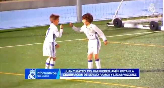 Este fin de semana se viralizó el video del festejo de dos juveniles de la cantera del Real Madrid, quienes tras anotar un gol de cabeza imitaron el festejo habitual de Sergio Ramos y Lucas Vázquez.