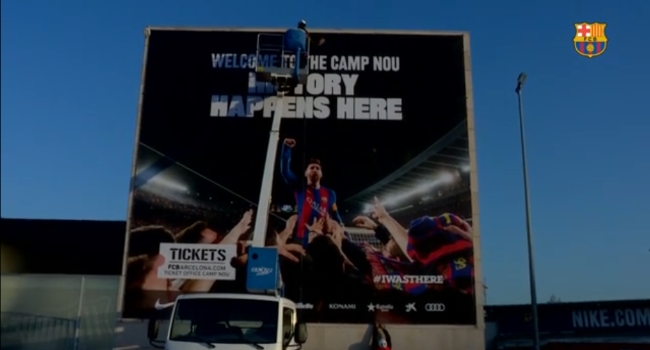 Bajo el slogan de “Bienvenidos al Camp Nou, en donde la historia tiene lugar”, la gigantografía del argentino celebrando el gol de Sergi Roberto y posterior acceso a Cuartos de Final de su club, ya puede ser disfrutada por los miles de visitantes que acuden al estadio cada día.