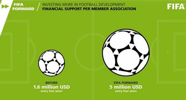 El valor que se recibe por año es de 1’250.000 desglosado en: $500.000 al año por federación miembro en concepto de costes operativos, en forma de incentivos que alienten las buenas prácticas y $750.000 para proyectos de fútbol concretos, como nuevas instalaciones e iniciativas de fútbol femenino y fútbol juvenil, sobre la base de contratos de objetivos.