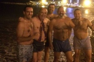Tras el impensado resultado que terminó por clasificar en tiempo adicional al FC Barcelona a los Cuartos de Final de la UEFA Champions League, Joan Gaspart ex presidente del club tuvo que cumplir una promesa con su hijo y bañarse a la noche en las costas de La Barceloneta, uno de los barrios más reconocidos de Catalunya.