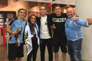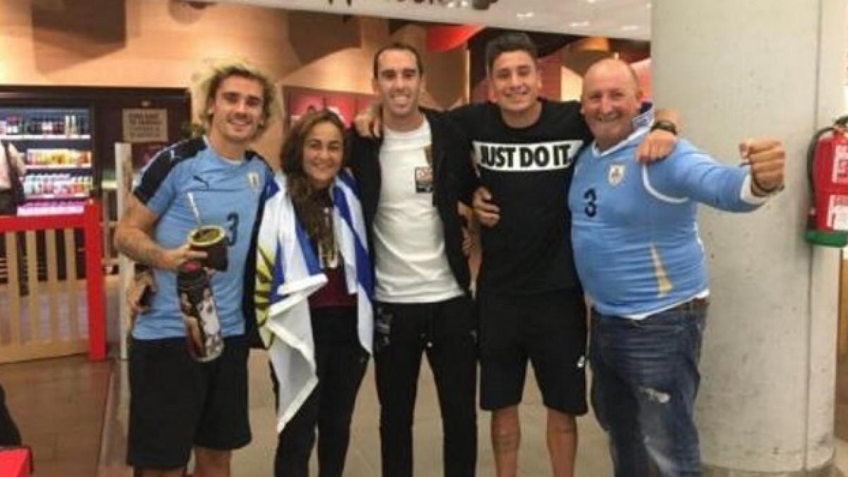 Griezmann recibió a sus compañeros en el aeropuerto con camiseta de Uruguay y un mate