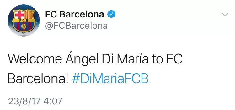 Tras anunciar falsamente a Ángel Di Maria como refuerzo del club, OurMine publicó otro mensaje en la misma cuenta oficial del equipo atribuyéndose la autoría del atentado cibernético, en donde ironiza con el FC Barcelona y pide que se contacten directamente con el grupo.
