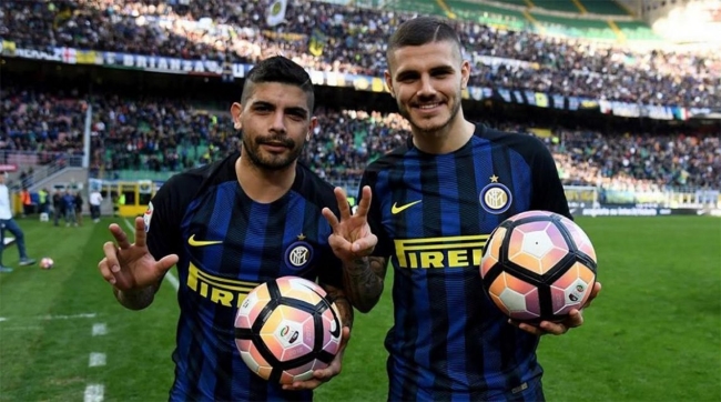 Éver Banega y Mauro Icardi convirtieron tres goles cada uno para la goleada del Inter por 7 a 1 sobre Atalanta. Los jugadores argentinos no sólo se llevaron una pelota cada uno, por sendos hattricks, sino que también entraron en la historia del club neroazzurro.