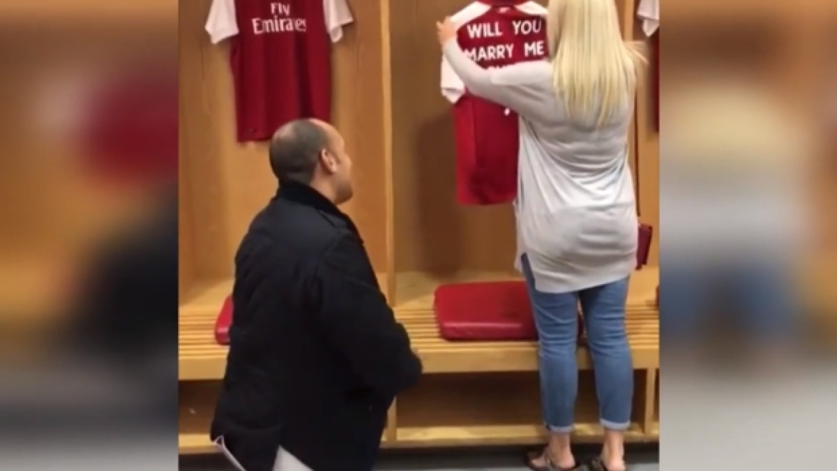 Un hincha del Arsenal le pidió matrimonio a su novia en el vestuario del Emirates Stadium