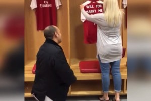 Como una muestra de amor hacia su mujer y el Arsenal, un fanático inglés viralizó su propuesta de matrimonio en el vestuario del estadio mediante una camiseta especial y su respectivo anillo de compromiso.