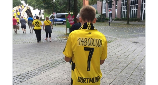 Simplemente genial! En Dortmund en lugar de quemar la camiseta de #Dembele la han tuneado por la cifra que han recibido con su venta pic.twitter.com/YF5WNjLr06