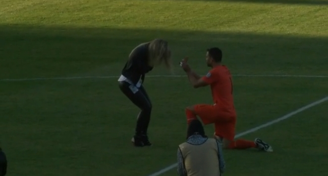 Previo a una nueva fecha de la North American League, torneo semi profesional de fútbol estadounidense, el arquero de los San Francisco Deltas protagonizó uno de los hechos más curiosos de la jornada, tras proponerle matrimonio a su novia dentro del campo de juego.
