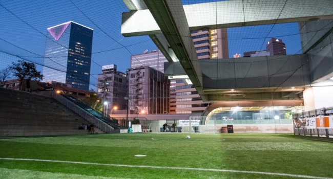 Así, en la estación Five Points MARTA, en pleno centro de Atlanta, se construyó una inédita cancha de fútbol.
