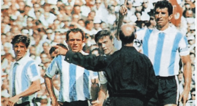 No obstante, y entre otras versiones, la que más resaltada por sus características, es aquella recordada anécdota de Antonio Rattín y compañía durante el Mundial de Inglaterra 1966, en donde el entonces capitán del seleccionado argentino se vio expulsado de forma verbal.