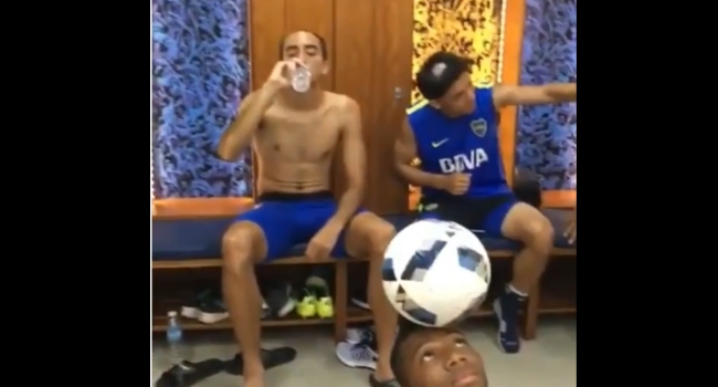 En el video, se aprecia a Pavón sacando una selfie junto con Ricardo Centurión, a dos de los cuatro juveniles con sus característicos ‘peinados del debut’, a Sebastián Pérez levantándose y a Fabra posando desde el piso con una pelota inmóvil en su cabeza.
