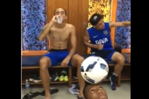 En el video, se aprecia a Pavón sacando una selfie junto con Ricardo Centurión, a dos de los cuatro juveniles con sus característicos ‘peinados del debut’, a Sebastián Pérez levantándose y a Fabra posando desde el piso con una pelota inmóvil en su cabeza.