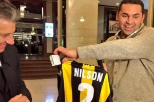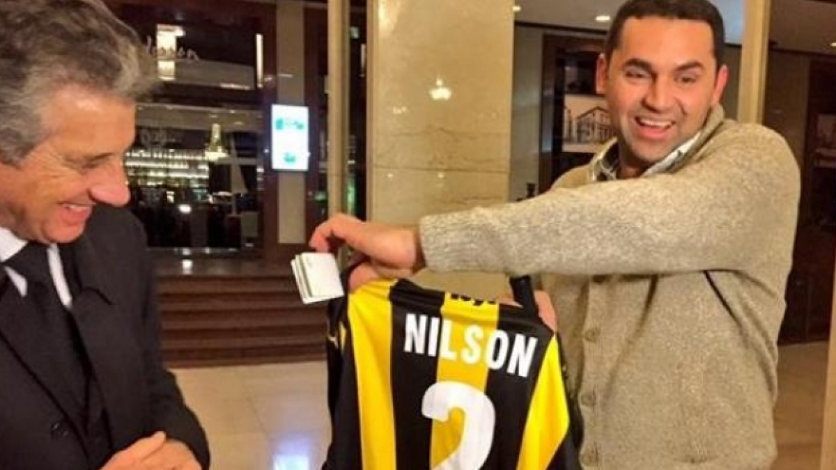 Como parte de su agenda, Nilson dialogó con los medios y confesó ser hincha de Peñarol, ante lo cual Juan Pedro Damiani, presidente del club, no dudó en invitarlo al Palacio de Peñarol y brindarle un curioso reconocimiento en manos de Fernando Morena.