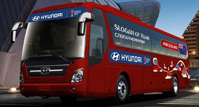Tal y como ha venido trabajando en las últimas competiciones internacionales, Hyundai como patrocinador oficial de la FIFA, abrió esta semana el concurso en línea para la próxima Copa Confederaciones denominado Be there with Hyundai, abriendo la posibilidad a hinchas alrededor del mundo de sugerir el mejor eslogan para el bus que transporte a cada seleccionado participante, además de la posibilidad de ganar un viaje al torneo.