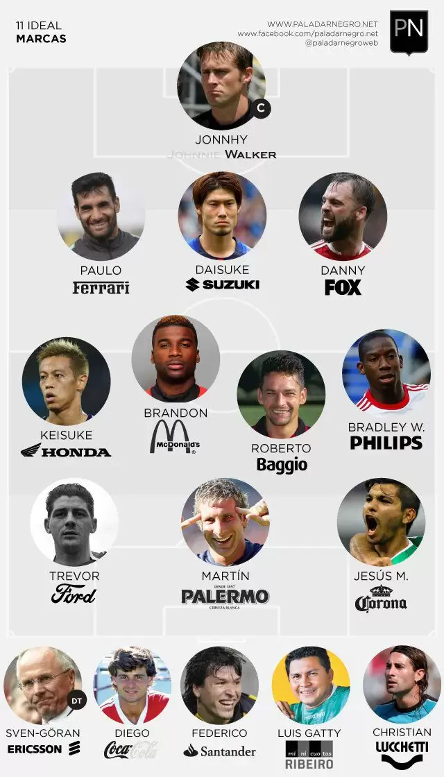 Fiel a su particular estilo, el sitio Paladar Negro se animó a elaborar un Once Ideal con futbolistas y ex futbolistas con el apellido de alguna marca.