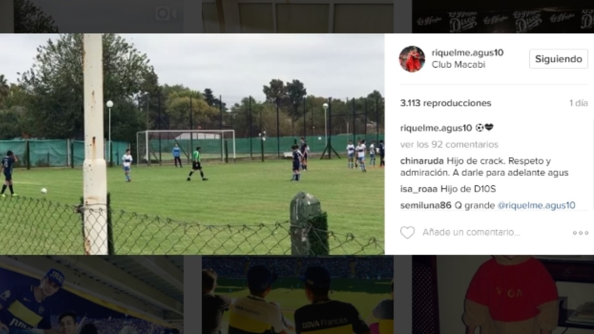 A dos años del retiro del fútbol de Juan Román Riquelme, su hijo Agustín ya empezó a replicar algunos de los pasos de su padre con la pelota.