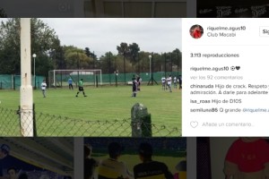 Este fin de semana, mediante su cuenta personal de Instagram publicó un video en el cual se lo ve marcando un gol de tiro libre para su club, con particulares gestos técnicos muy parecidos a los de su padre.
