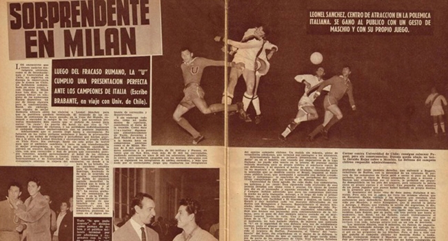 Por su parte, el partido que recuerdan los chilenos, se remonta a un histórico 2 a 1 de visitante en el Giuseppe Meazza, que con goles de Leonel Sánchez y Osvaldo Rojas se impuso al entonces campeón de Italia.