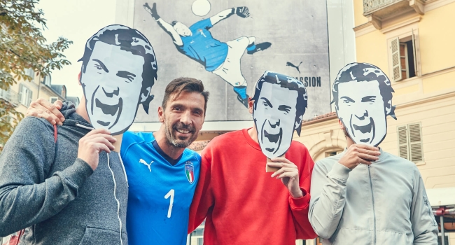 En homenaje a los 20 años de trayectoria del arquero insignia de la selección, Gianluigi Buffon, la marca alemana preparó una serie de murales en la ciudad de Turín, Italia y presentó con su participación esta semana la nueva camiseta del seleccionado.