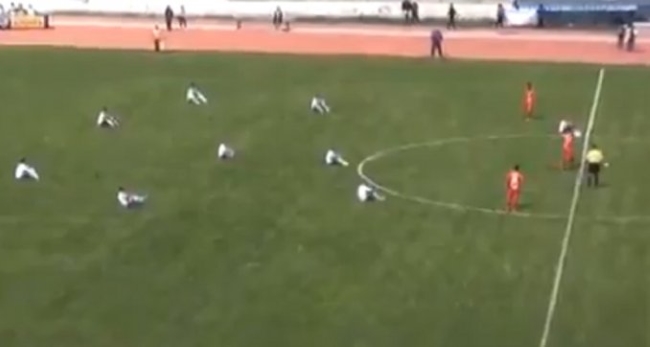 El equipo que fuera rival de River Plate en la Libertadores 2015 fue apoyado por su rival cuando todos sus jugadores decidieron sentarse en pleno campo de juego, no sin antes haber ingresado al terreno de juego con una bandera apuntando hacia el máximo mandatario.